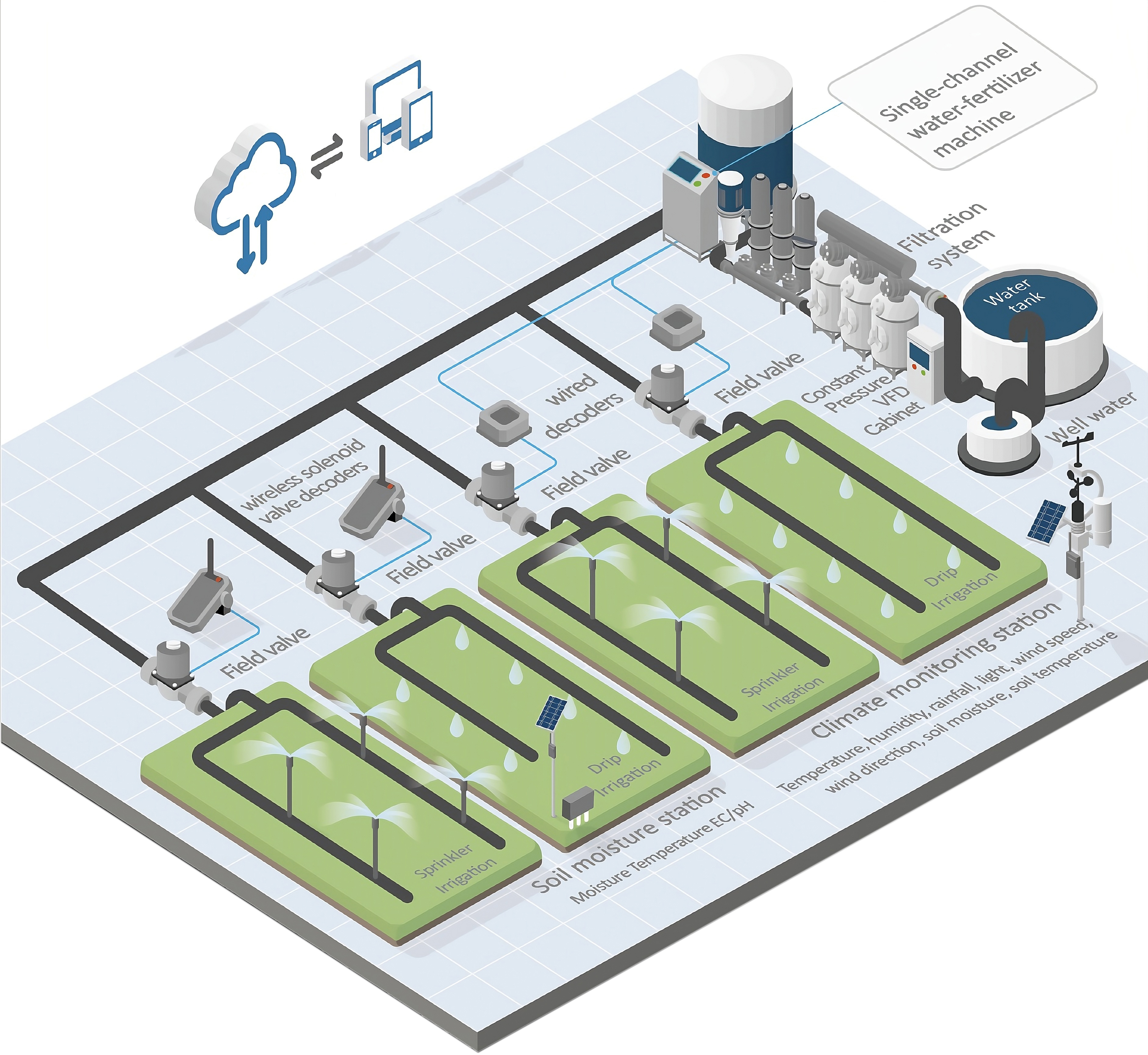 Whether it's a sudden rainstorm or a hot spell, our system automatically adjusts irrigation in real-time, ensuring your crops receive the right amount of water at the right time.